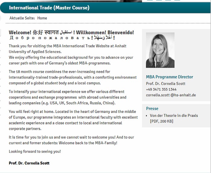 MBA-- Master of Business Administration (International Trade) ---- the Anhalt University of Applied Sciences